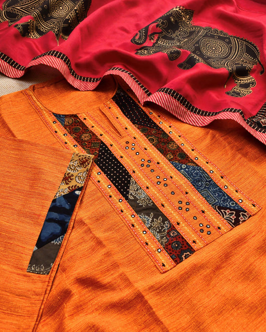 Ajrakh Hand Dyed Block Printed Embroidered Dupatta