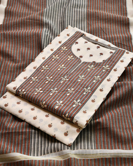 Pure Mul Chanderi Hand Embroidered unstitched Suit
