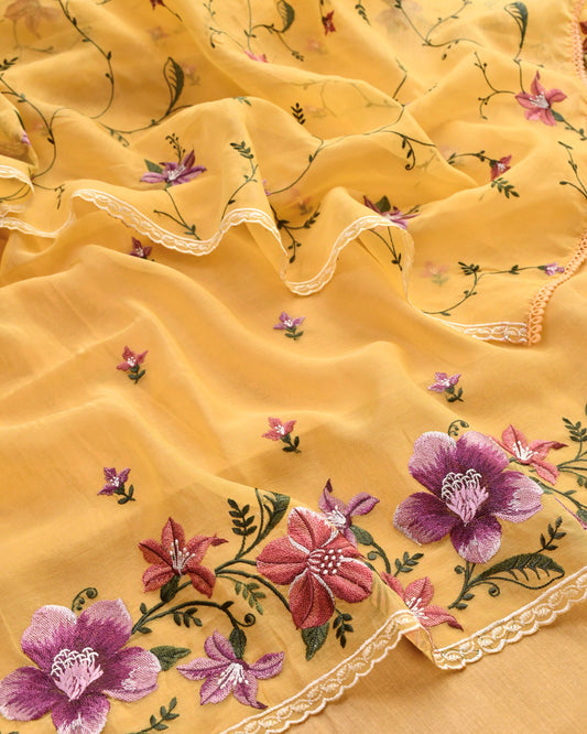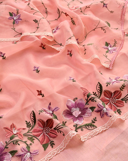 Pure Mull Chanderi Unstitched Suit with Intricate Pearl & sequence Hand Embroidery