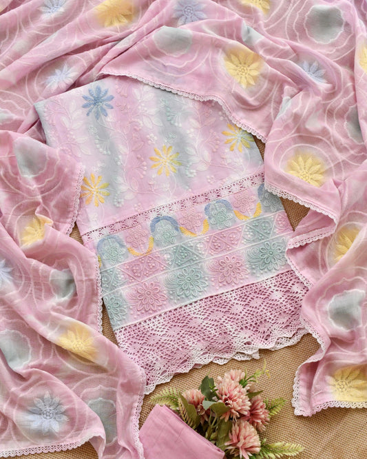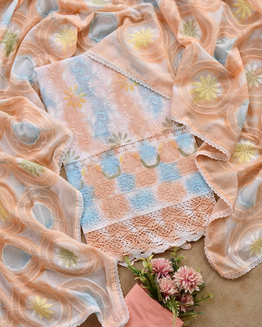Pastel Cotton Chikankari Inspired Embroidered Unstitched Suit Set