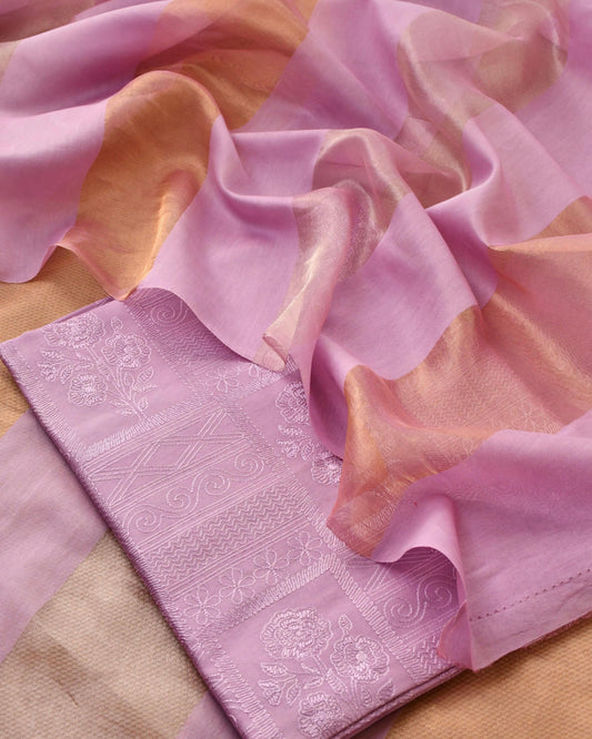 Pure Chanderi SIlk Unstitched Suit Set