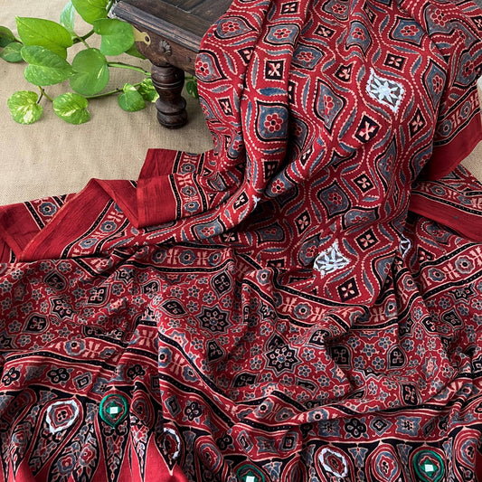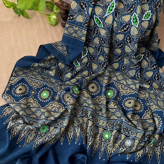 Ajrakh Hand Dyed Block Printed Embroidered Dupatta