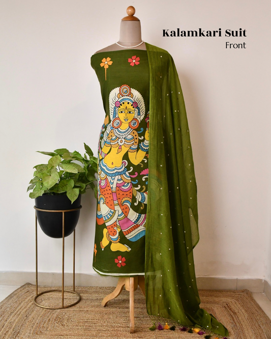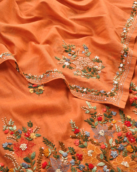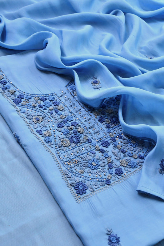 Pure Mul Chanderi Hand Embroidered unstitched Suit