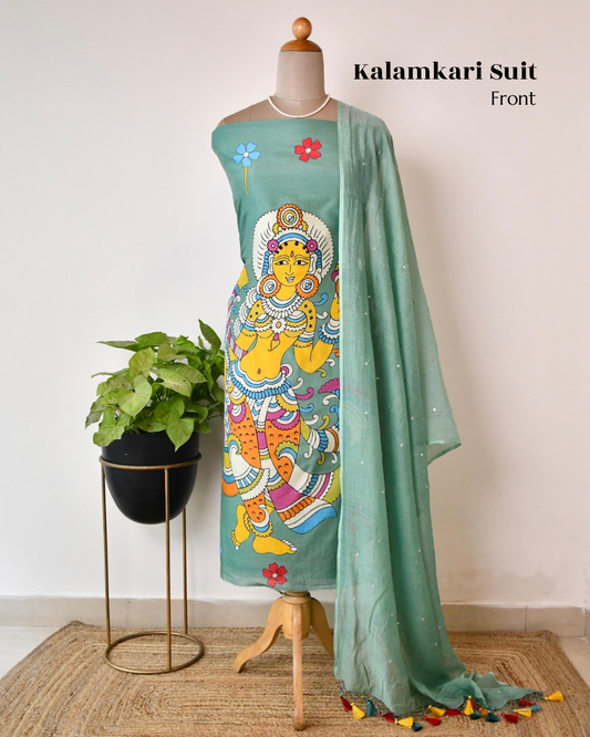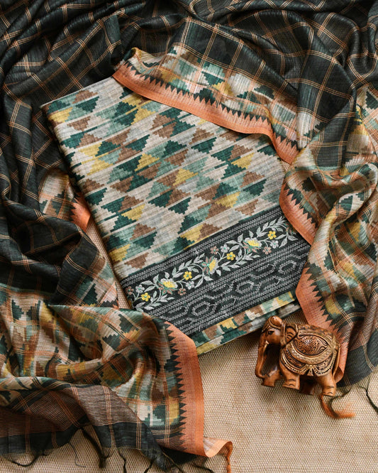 Unstitched Tussar Silk Suit Set with Hand embroidery