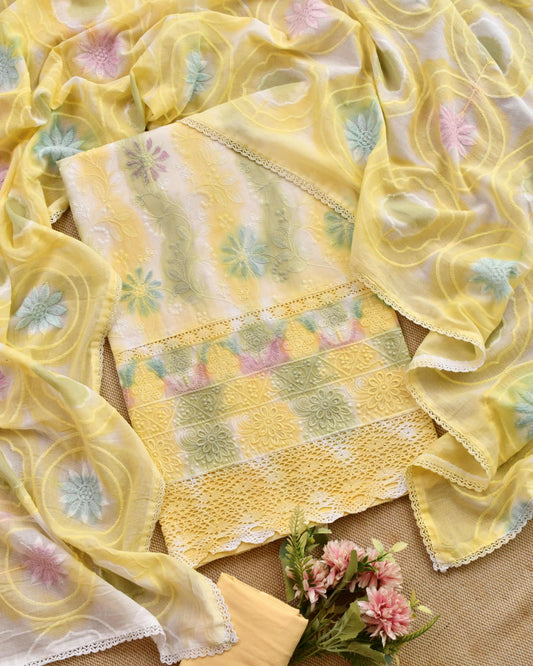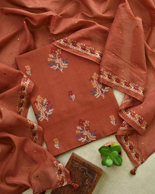 Rubia Cotton Unstitched Suit Set with Mul Chanderi Dupatta