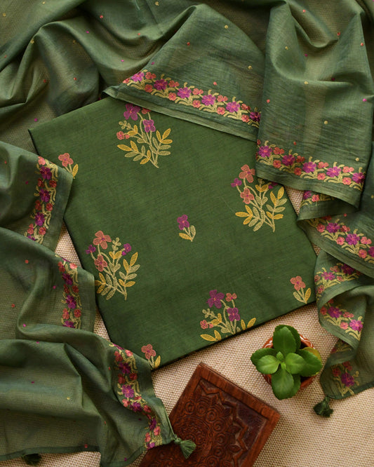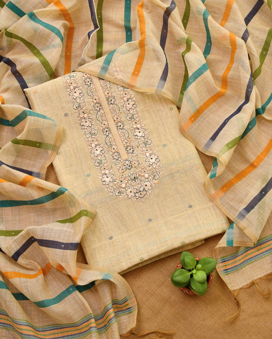 Handwoven Maheshwari Silk Embroidered Unstitched Suit