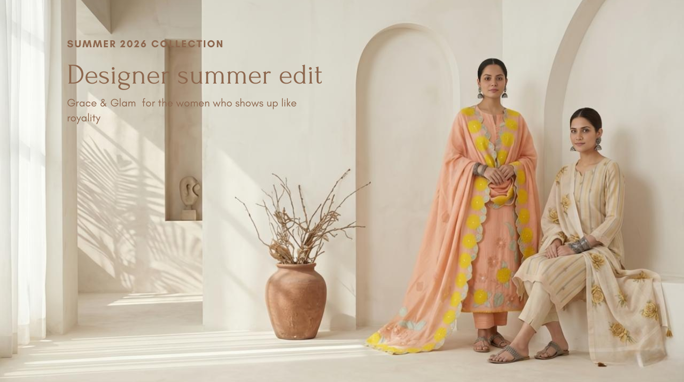 Started as an initiative to preserve and promote rich Indian textile heritage and bring timeless treasures from the heart of the country. We are a reservoir of finest weaves from Banaras, Maheshwar, Rajasthan , West Bengal , Gujarat and Punjab with exquisite range of our unstitched suits, stitched suits, dupattas and stoles.