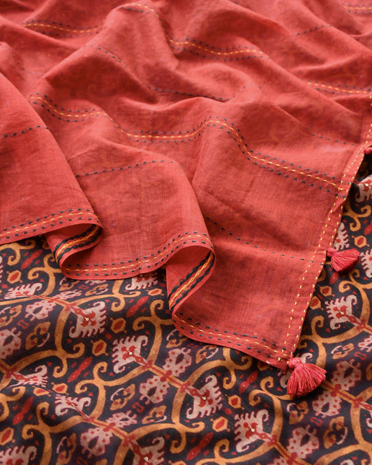 Ajrakh Hand Dyed Block Printed Embroidered Dupatta
