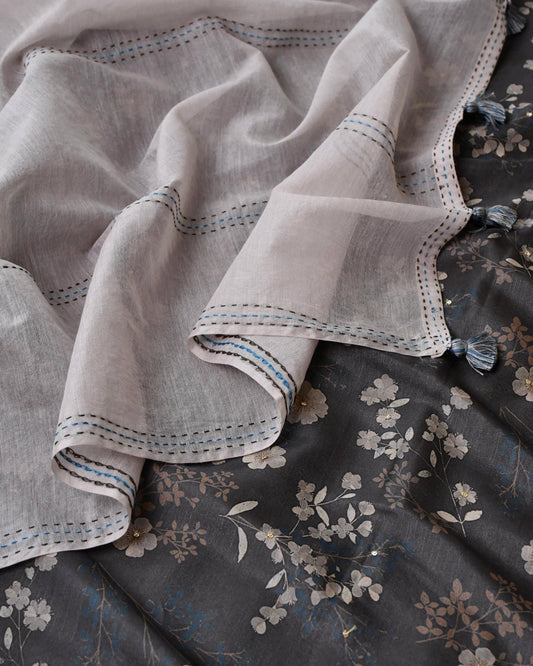 Artisanal Pure Muslin Unstitched Suit with Hand-Embroidered Detailing