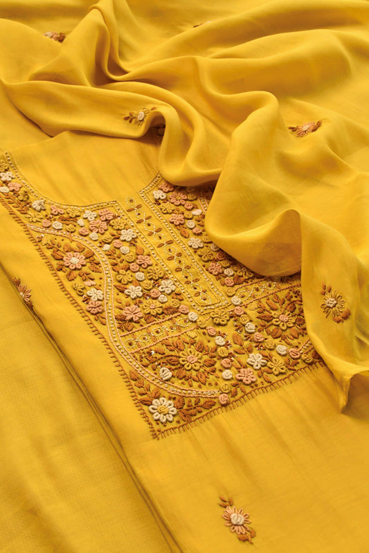 Pure Mul Chanderi Hand Embroidered unstitched Suit
