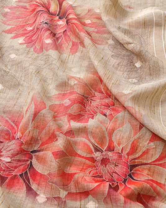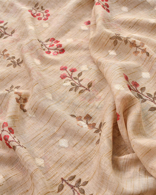 Pure Linen Unstitched Suit with French Knot Floral Embroidery