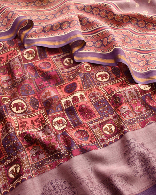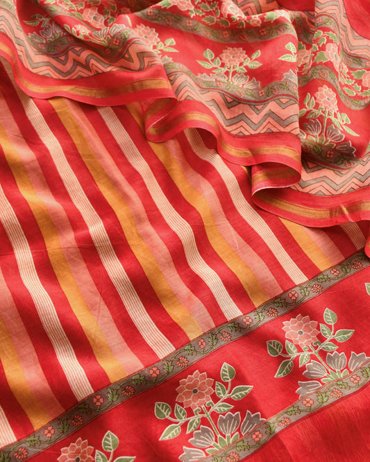Elegant Maheshwari Silk Unstitched Suit Set with Traditional Prints