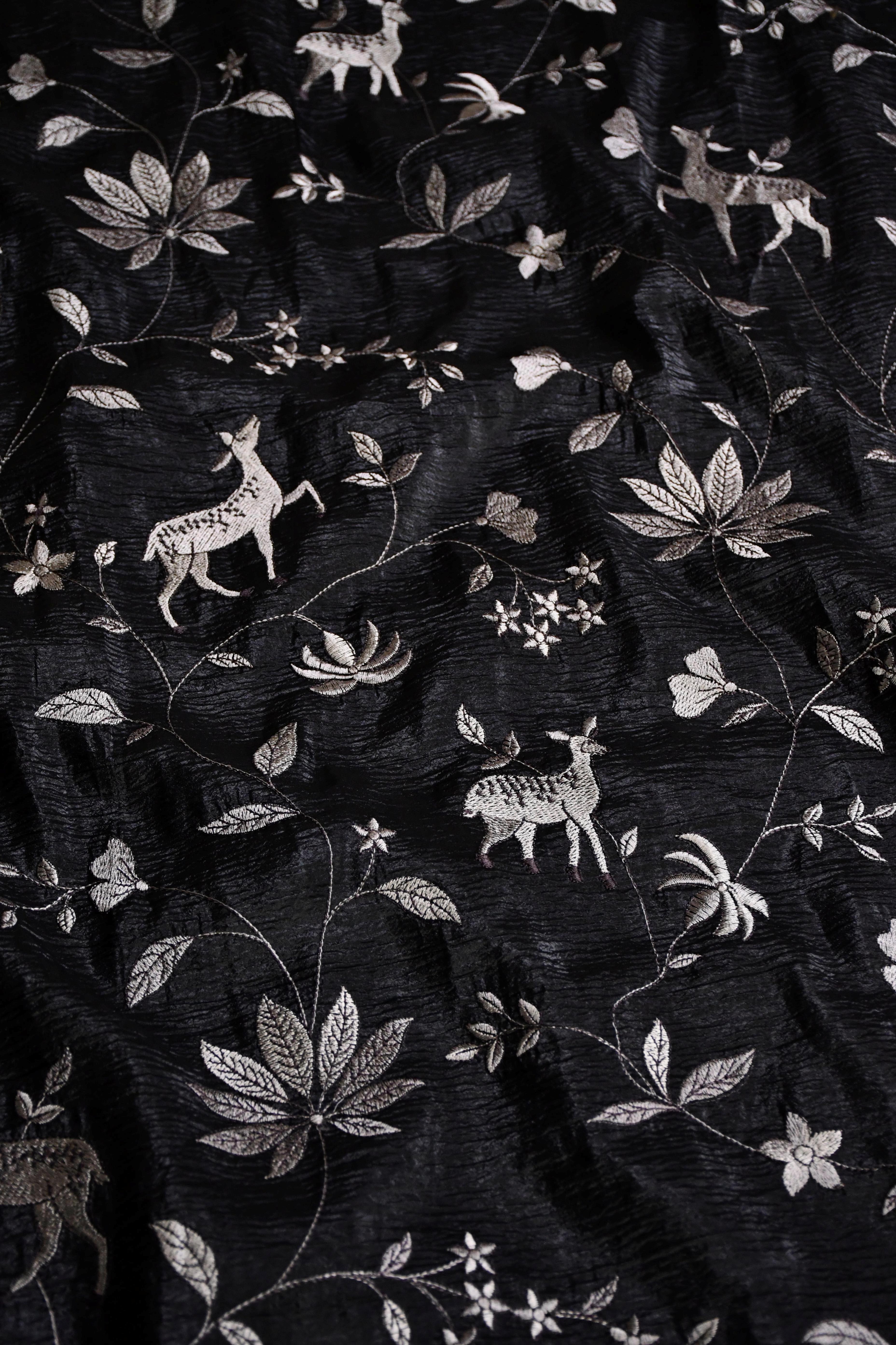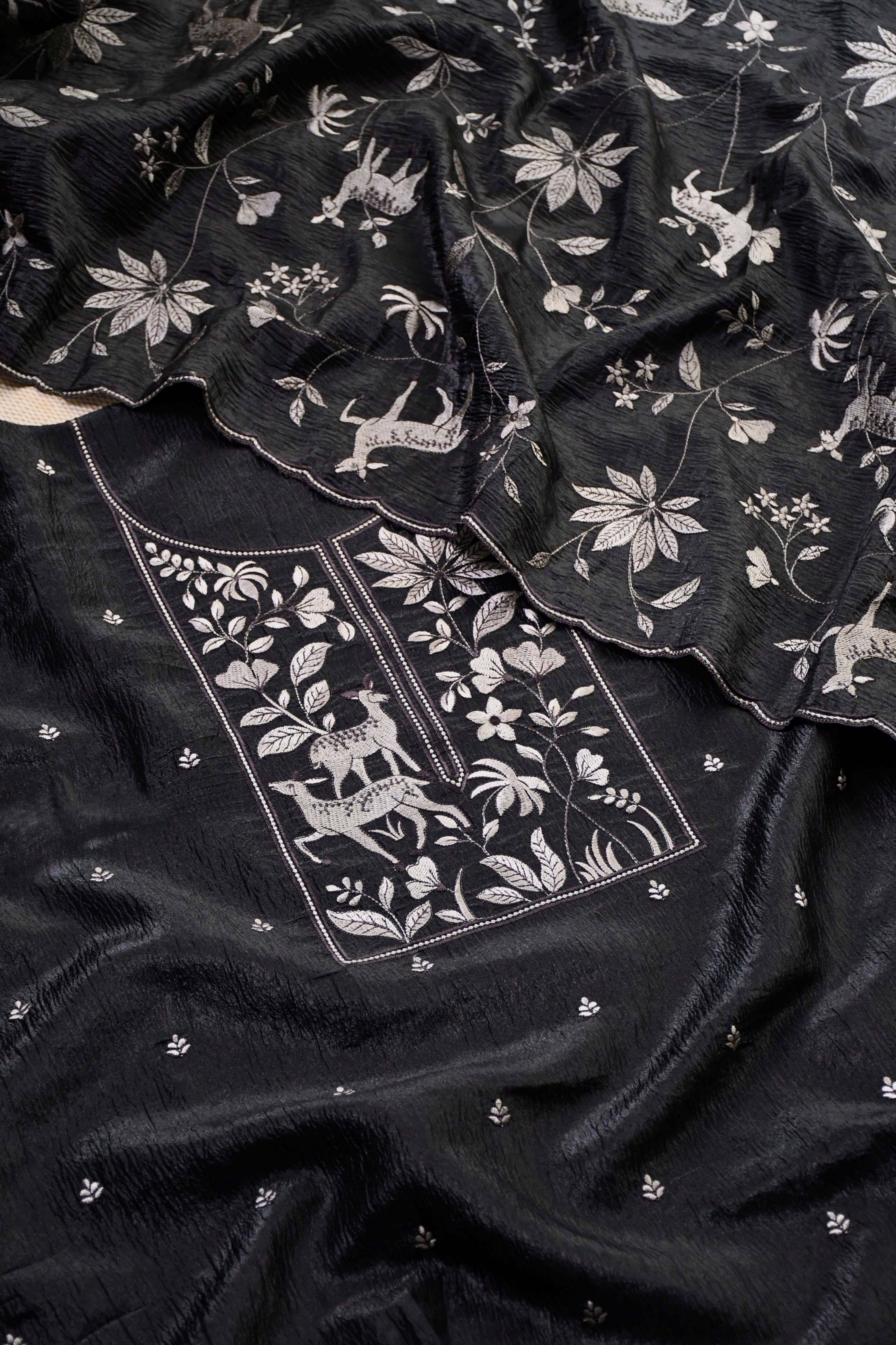 Top Fabric - Pure ultra soft crushed Tissue Silk Shirt with Embroidered Neck Yoke and Border