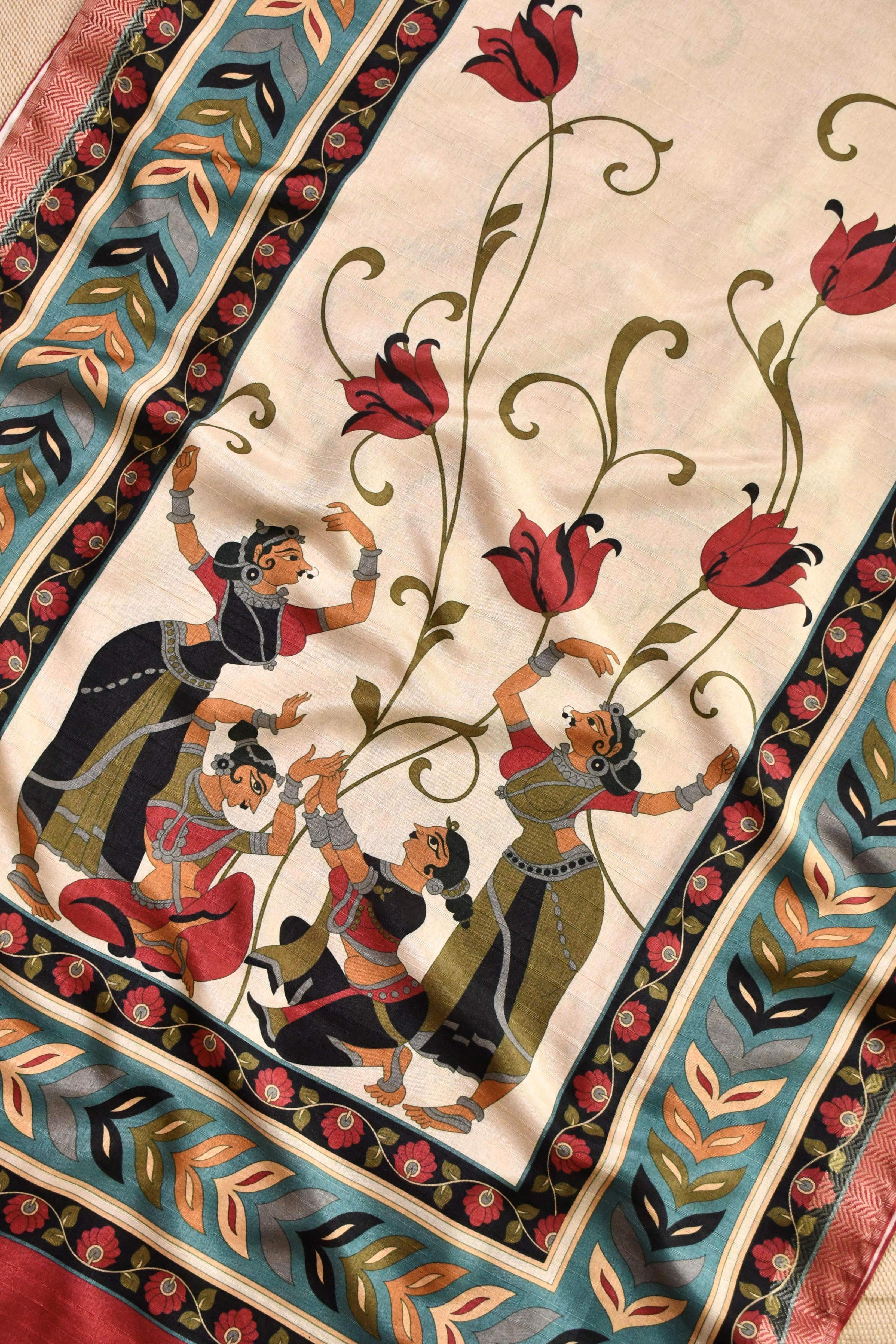 Dupatta -Tussar Silk Dupatta inspired by folk art & miniature paintings